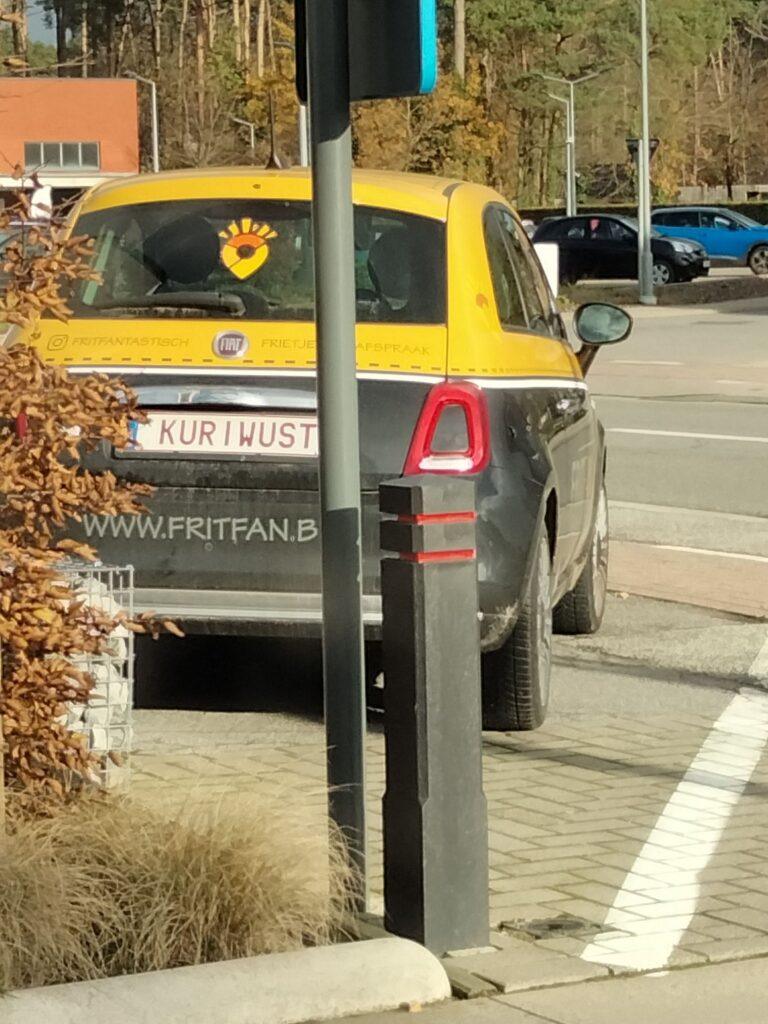 We hebben al heel wat gepersonaliseerde nummerplaten zien passeren, de ene al wat origineler dan de andere. Als je er dan toch voor kiest om 1.000 euro op te hoesten, kom je best een beetje creatief uit de hoek. De eigenaars van een frituur in Tremelo begrepen die opdracht ten volle. Hun Fiat 500L trekt meteen de aandacht, want op de nummerplaat staat ‘KURIWUST’ te lezen. Een mens zou er haast zin van in frietjes krijgen…