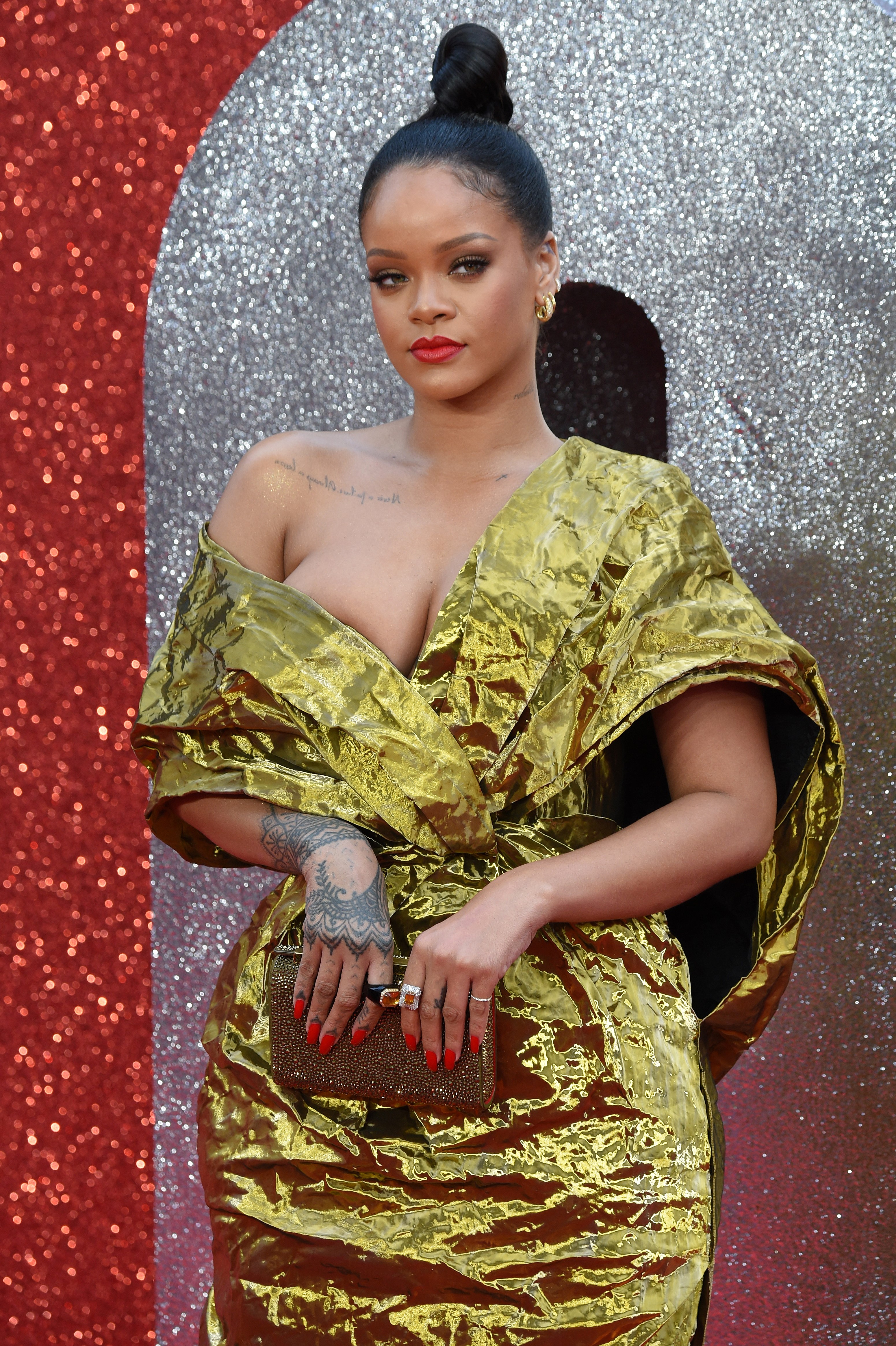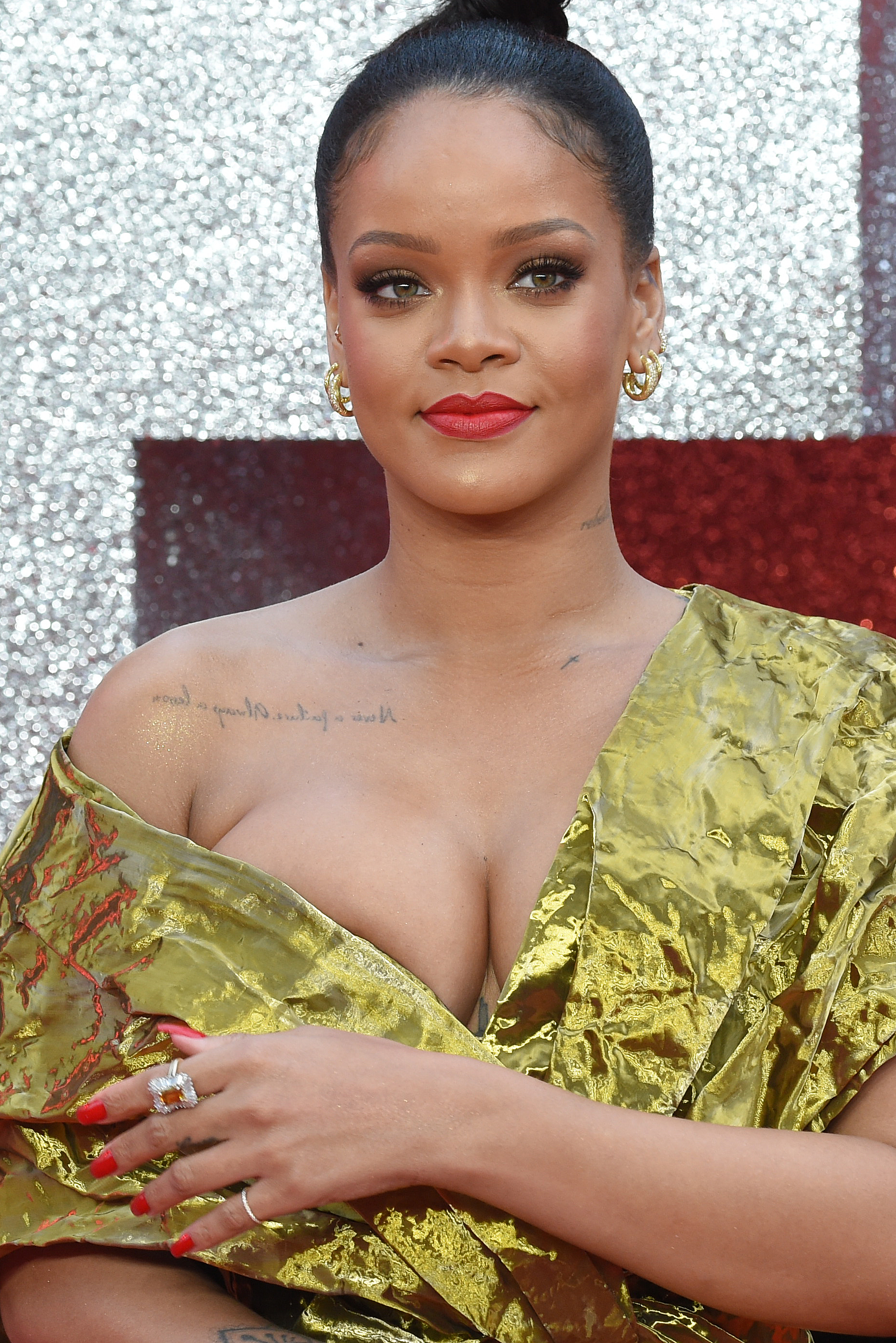 Want de dame heeft de grootste moeite om haar boezem netjes verstopt te houden. Dat leverde dan wel weer leuke plaatjes op. En Rihanna zelf zal er waarschijnlijk ook geen slaap om laten.