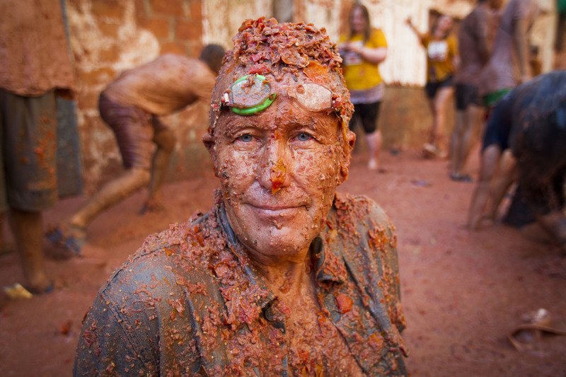 Meer dan 20.000 deelnemers aan het jaarlijkse Tomatina-festival in het Spaanse dorpje Bunol bekogelden elkaar gisteren met zo’n 145 ton aan overrijpe tomaten. De tomaten werden gegooid vanop zes grote open vrachtwagens. Al snel zat het hele dorp onder een dikke laag rode smurrie. Het evenement zou zijn ontstaan uit een ruzie tussen de dorpsbewoners in 1945. Tijdens het dictatorschap van Franco werd het opgeschort, maar vanaf de jaren 80 won het ‘tomatenfestival’ razendsnel aan populariteit, zowel in Spanje als ver daarbuiten.