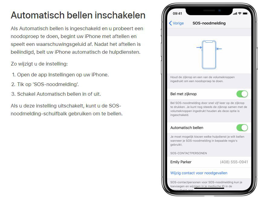 Als je beschikt over een iPhone met iOS 11 is het mogelijk om een SOS-noodmelding in te schakelen. Je kan dan een noodoproep doen naar de hulpdiensten zonder je touchscreen te moeten aanraken.